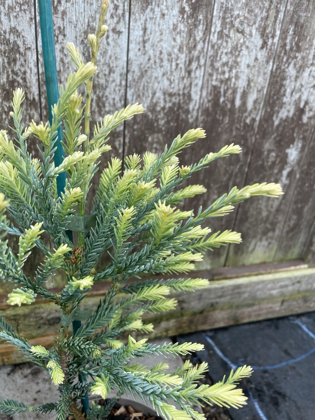 Sequoia sempervirens ‘Albospica’ and ‘Adpressa’ represent two fascinating expressions of the same genetic variation, with ‘Albospica’ being the upright, tree form and ‘Adpressa’ developing as a more compact version. Both cultivars showcase distinctive tight, dense foliage that sets them apart from typical Coast Redwoods.