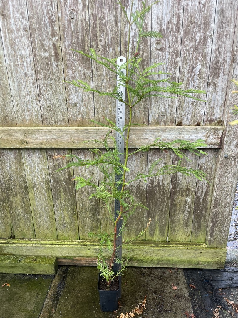 Position young Sequoia sempervirens in full sun or partial shade. When container-growing, use a large, well-draining pot with quality compost. Regular watering is essential for pot-grown specimens, especially during the growing season. Feed annually with a balanced fertiliser. While hardy once established, young plants benefit from winter protection, particularly in containers.