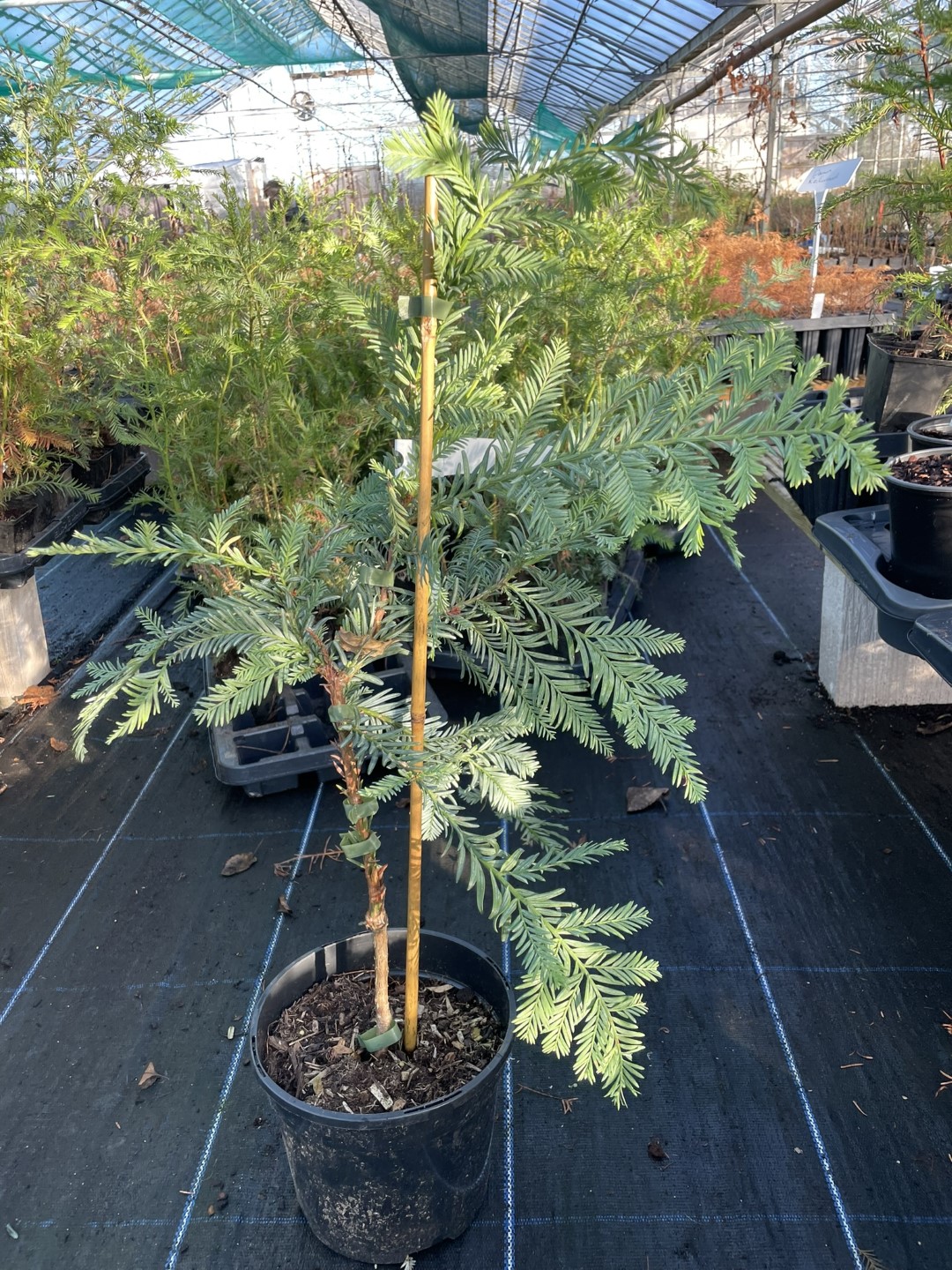 Perfect for creating dramatic backdrops or stunning specimen plants, Coast Redwood ‘Woodside Blue’ brings a unique combination of rapid growth and exceptional colour. Its upright habit and moderate spread make it suitable for medium to large gardens, where its striking blue foliage can be fully appreciated against other conifers or flowering plants.