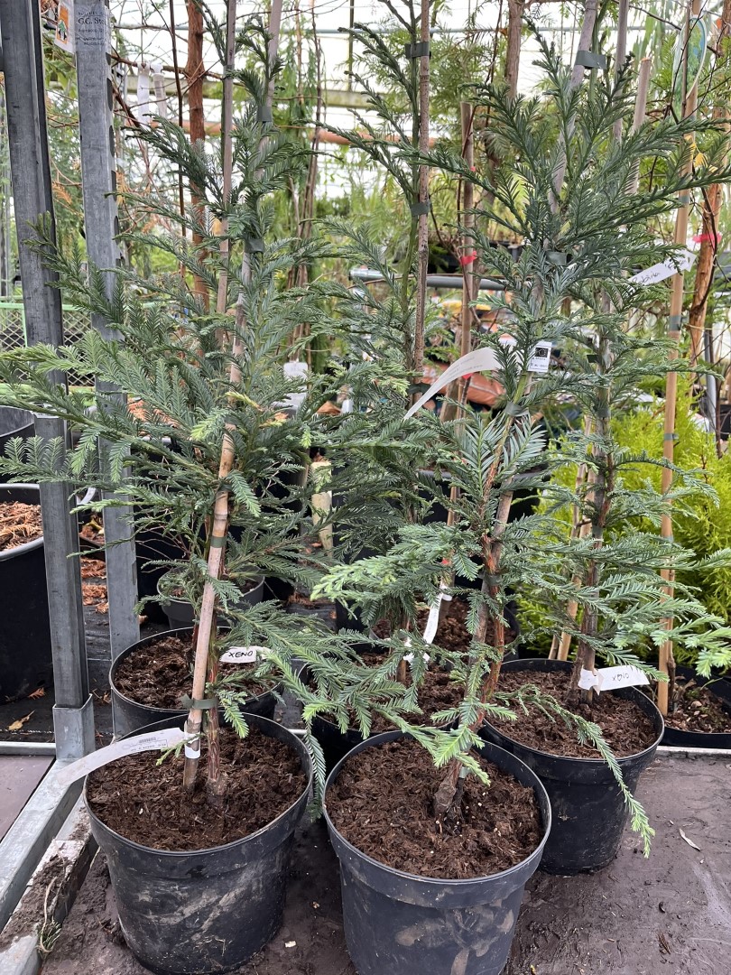 The dense, architectural form creates an impressive statement whether used as a specimen tree or as part of a larger planting scheme. Unlike the species, which can reach enormous heights, ‘Xeno’ maintains more manageable proportions while still delivering the unique character and presence that makes redwoods so special.