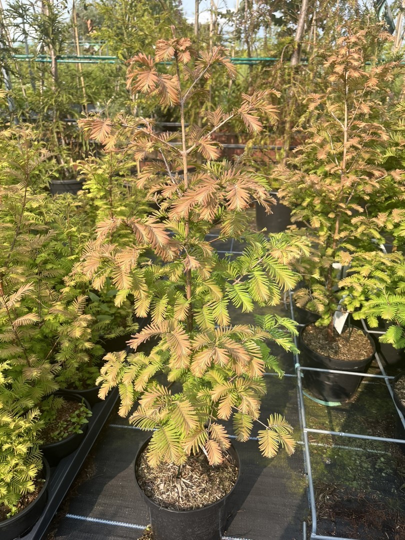 Expected to achieve a manageable size of 4-6 feet in both height and width over a decade, ‘Daweswood Tawny Fleece’ is ideal for those seeking a medium-sized focal point that combines the timeless beauty of the dawn redwood with unique colouration and form.