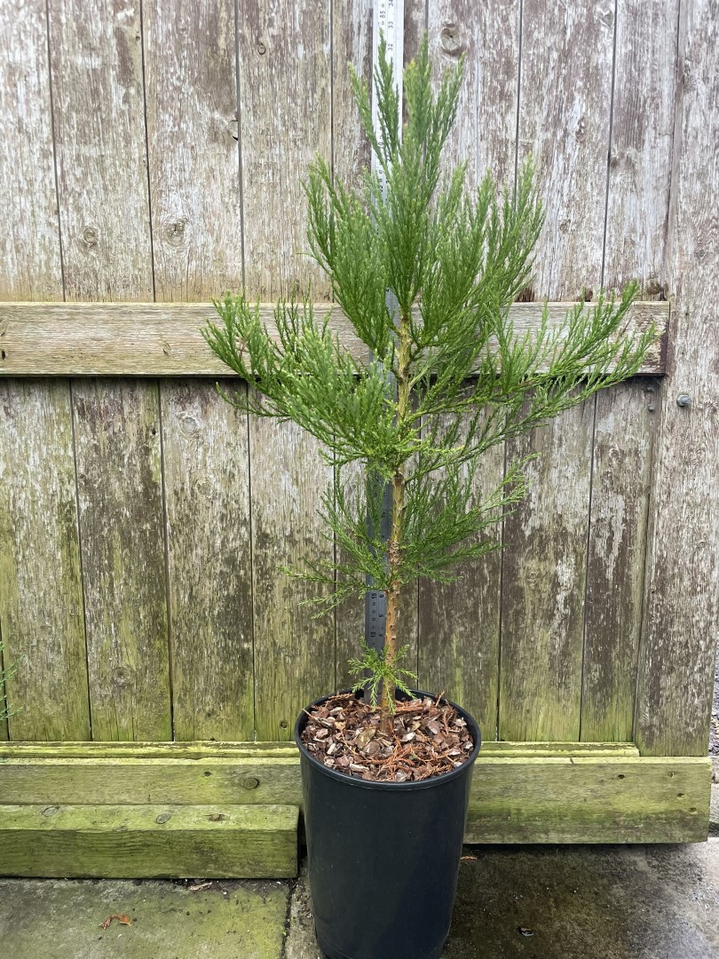 Plant your Giant Redwood – Sequoiadendron giganteum in well-drained soil in full sun to partial shade. While adaptable to most soil types, they prefer slightly acidic to neutral conditions. Water regularly when young, particularly during dry spells, though established trees become remarkably drought tolerant. No regular pruning is needed as they naturally form their classic shape. A yearly feed with a balanced fertiliser in spring will support healthy growth. Although hardy when mature, young trees benefit from shelter against strong winds.