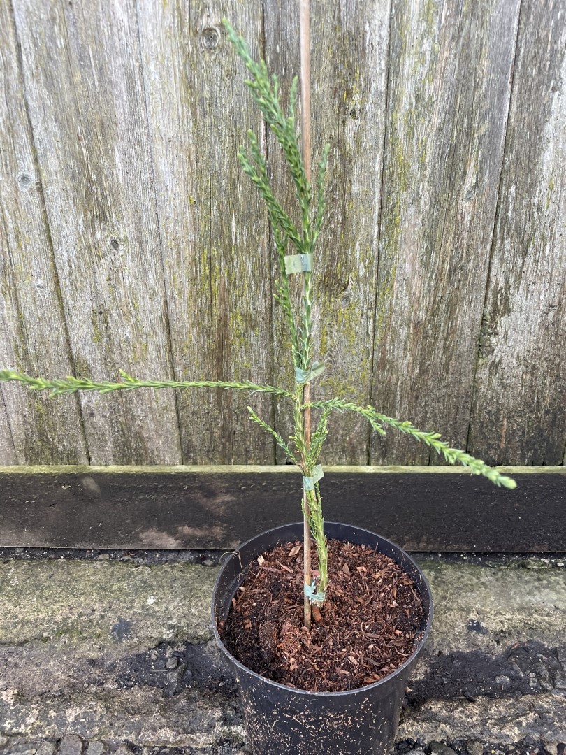 This slower-growing variety is perfect for gardens where space might be limited. While still forming the classic conical shape we love in Giant Redwoods, ‘Cannibal’ stays much more manageable, typically reaching 8-10 metres over many years. The open, slightly sparse branching pattern makes this tree really stand out, creating interesting shapes and shadows in the garden.